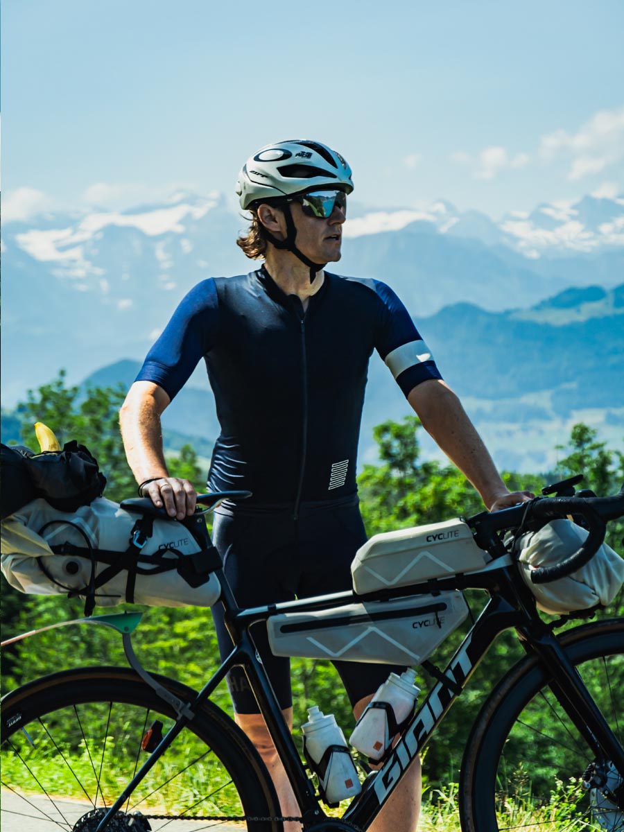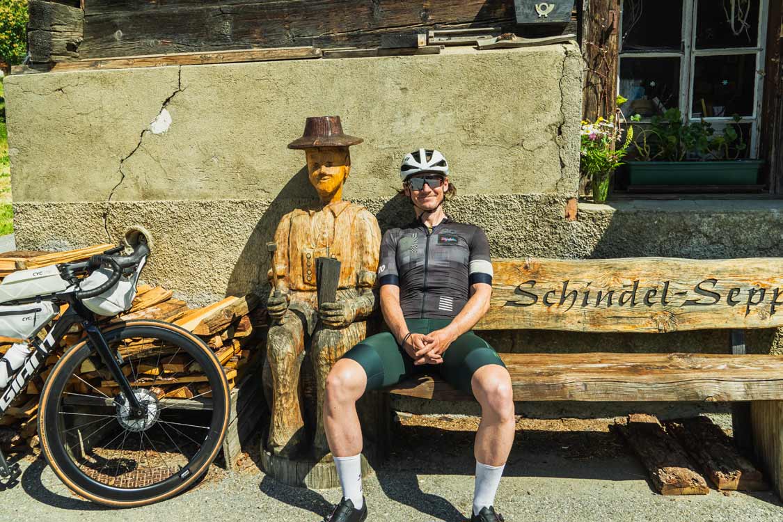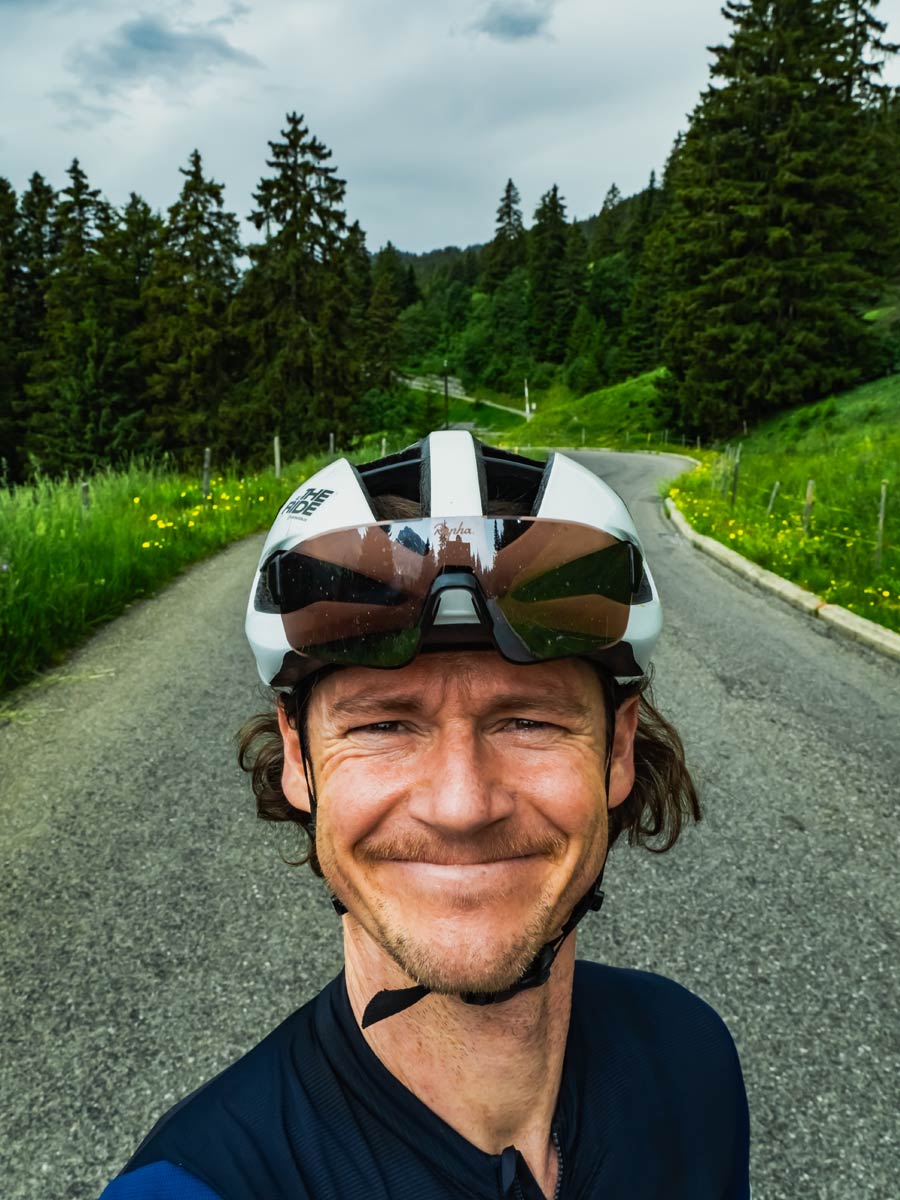 Switzerland by bike. Die Schweiz also ist mein zweites großes Bikepacking Abenteuer, das ich mir im Juni 2023 vorgenommen habe. Kleines Gepäck und großes Ziel. Ob ich die Idee 24 heaven, also 24 Pässe mit dem Rennrad zu bezwingen geschafft habe, erfahrt ihr weiter unten. Nur soviel vorab – die Schweizer Alpen sind gnadenlos und unendlich schön zugleich. Die Anreise mit der Bahn über Bozen gestaltet sich zäh und erst spät am Abend bin ich nach einer heftigen Regenschauer im hübschen Casa Chalavaina in Müstair angekommen. Doch ich wurde bestens verpflegt und so kann der erste Tag auf dem Rennrad bei strahlendem Sonnenschein beginnen. Zunächst geht es über den Umbrailpass bis kurz unter die Schneegrenze. Auf dem Weg hinauf bin ich gleich einem anderen Radreisenden fortgeschrittenen Alters begegnet. Toni und ich machen ein gemeinsames Foto, quatschen sehr nett, dann trennen sich unsere Weg wieder. Bevor es für mich über Bormio hinauf zum Gavia auf 2.652 m geht, erwischt mich eine heftigste Regenschauer im Anstieg. Oben angekommen bin ich derart durchgefroren, dass ich mich im Café erst mal aufwärmen muss. 4 Grad hier oben, der Juni kann auch kalt sein. Auf dem Weg hinunter nach Ponte die Legno zittere ich durchweg vor Kälte, das ist absolut kein Spass. Die erste Grenzerfahrung. Ebenso wie das Finale hinauf zum Mortirolo, in dem noch mal 900 Höhenmeter bis zum Hotel zu klettern sind. Aber Schleife durch die Schweiz hat sich gelohnt, auch wenn mir die drei Gänge zum Einstieg mit frostigem Zwischengang gleich am ersten Tag alles abverlangt haben. Bin gespannt, was mich am zweiten Tag in der Schweiz erwartet. Der Berninapass wartet.